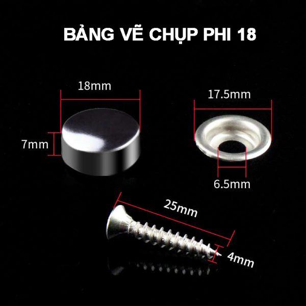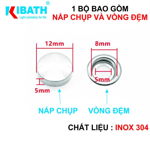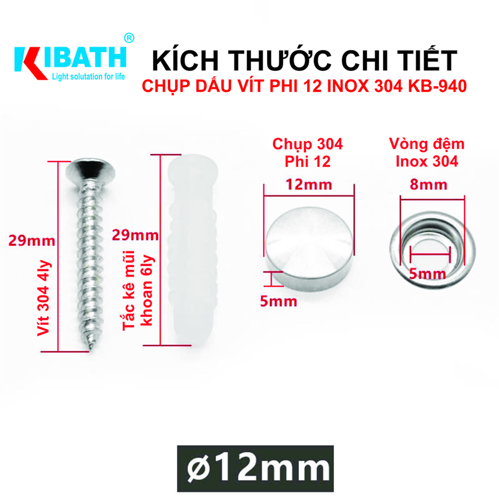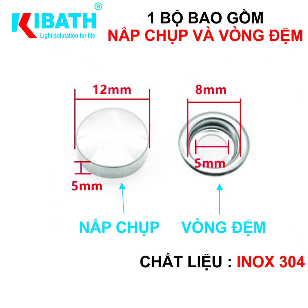 Combo 4 Bộ Chụp Phi 12Combo 4 Bộ Phi 18Chụp Đầu Vít Kibath Phi 12 Inox 304 KB -940 Nâng Tầm Vẻ Đẹp và Độ Bền cho Công Trình