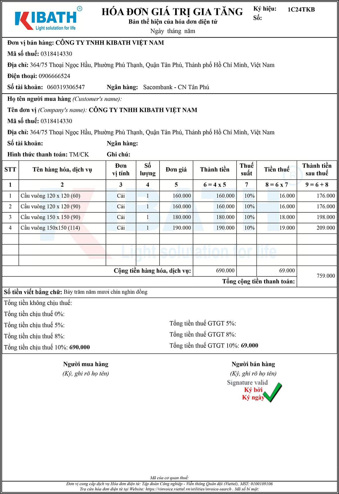 Giá bán đã bao gồm VAT 10%, chưa bao gồm phí ship