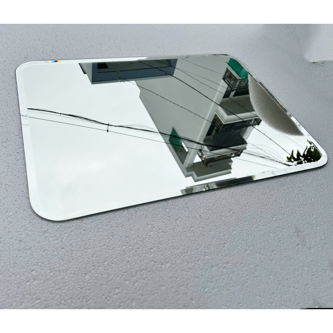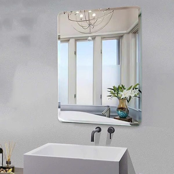 Gương thiết kế theo phong cách tối giản với 4 góc bo viền mềm mại. Gương không sử dụng khung, mang đến cảm giác “âm tường”, dễ dàng kết hợp cùng các vật dụng trang trí nội thất khác.