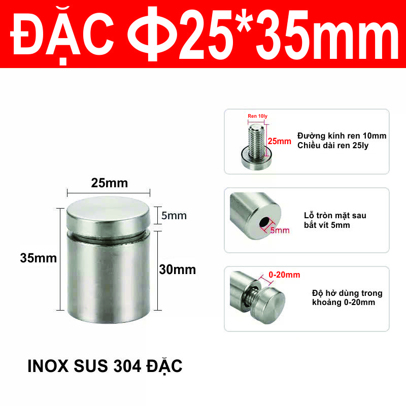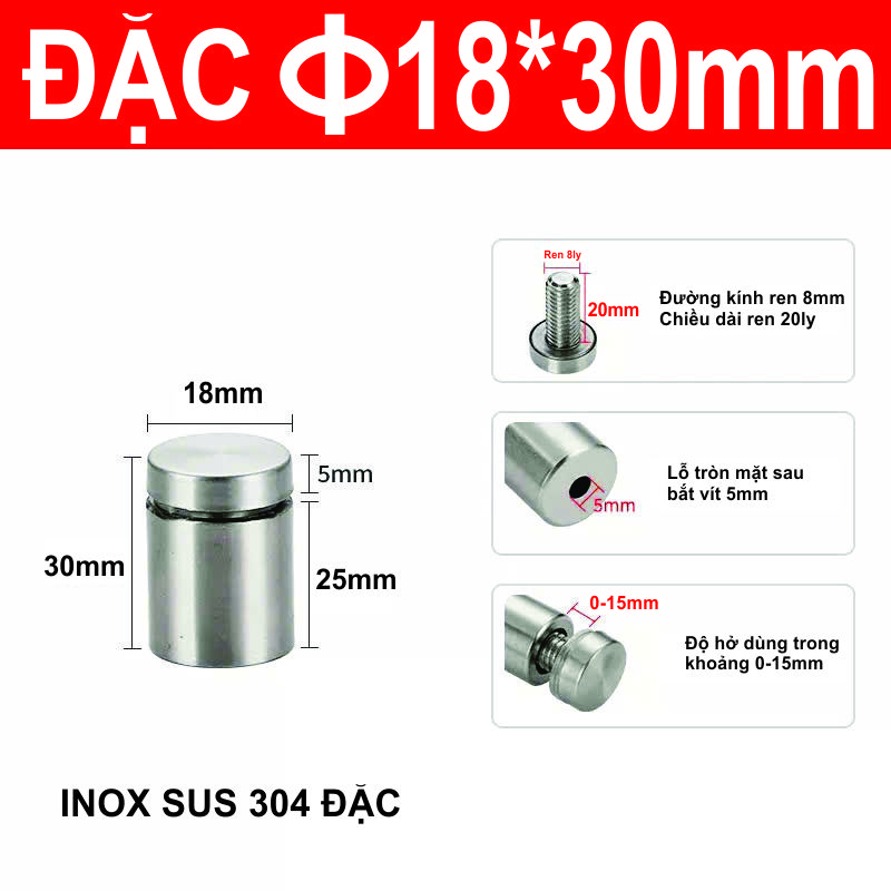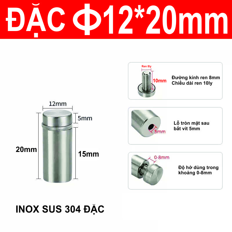 👉 Ốc inox 304 đặc bắt kính chính là lựa chọn hàng đầu cho thi công nội thất & quảng cáo.