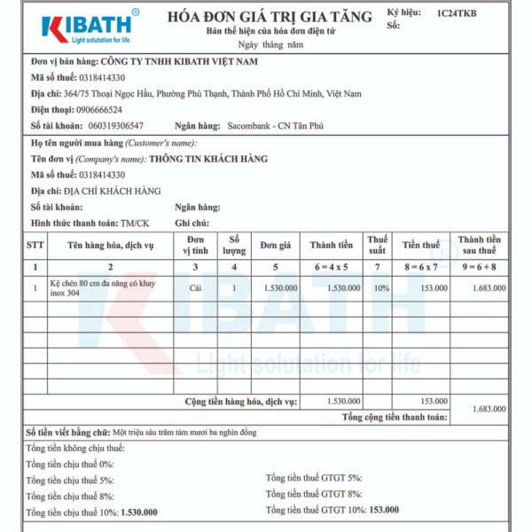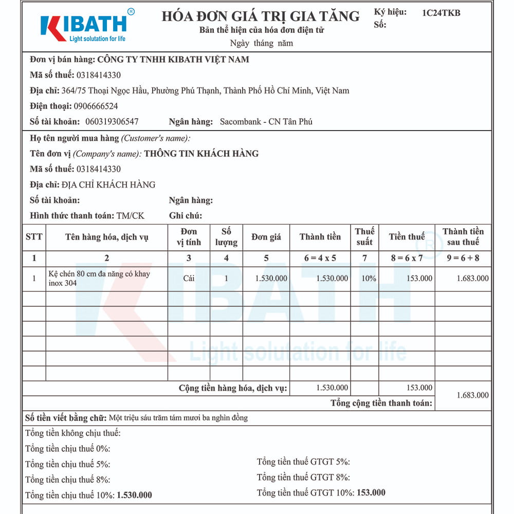 HÓA ĐƠN NHÁP MẪU KỆ CHÉN DÀI 80CM