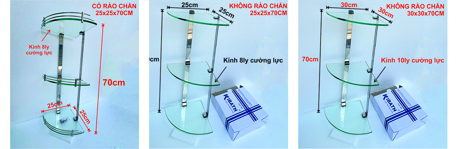 Kích thước Có Rào Chắn 25x25x70 cm ; Không Rào Chắn 25x25x70cm ; Không Rào Chắn 30x30x70cm