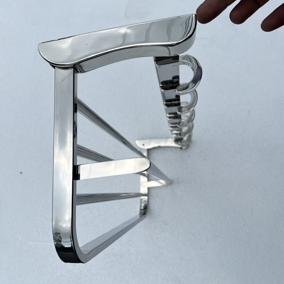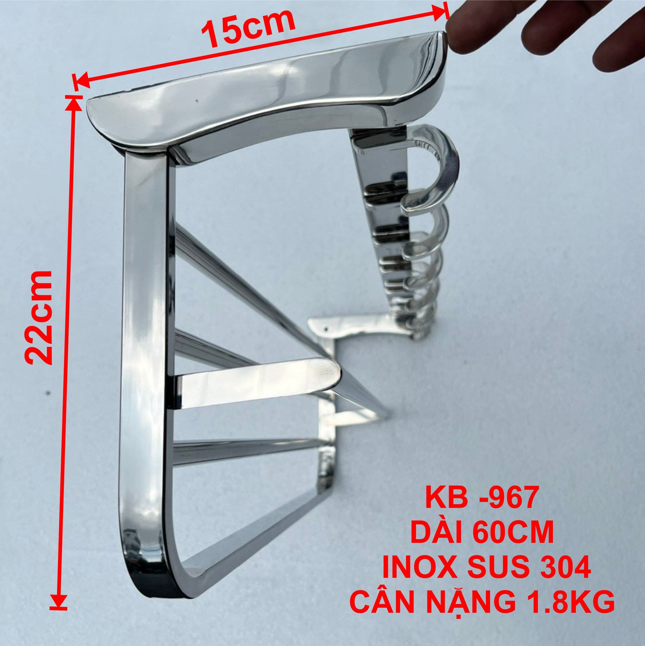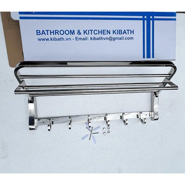 – Mẫu máng khăn cao cấp mã KB-967 được Kibath thiết kế và sản xuất với đế đúc nhìn sang trọng hơn, móc áo đúc 6 chấu cứng cáp thanh lịch, sản phẩm được Kibath sản xuất bằng inox SUS 304 đảm bảo chống gỉ sét trong môi trường ẩm ướt